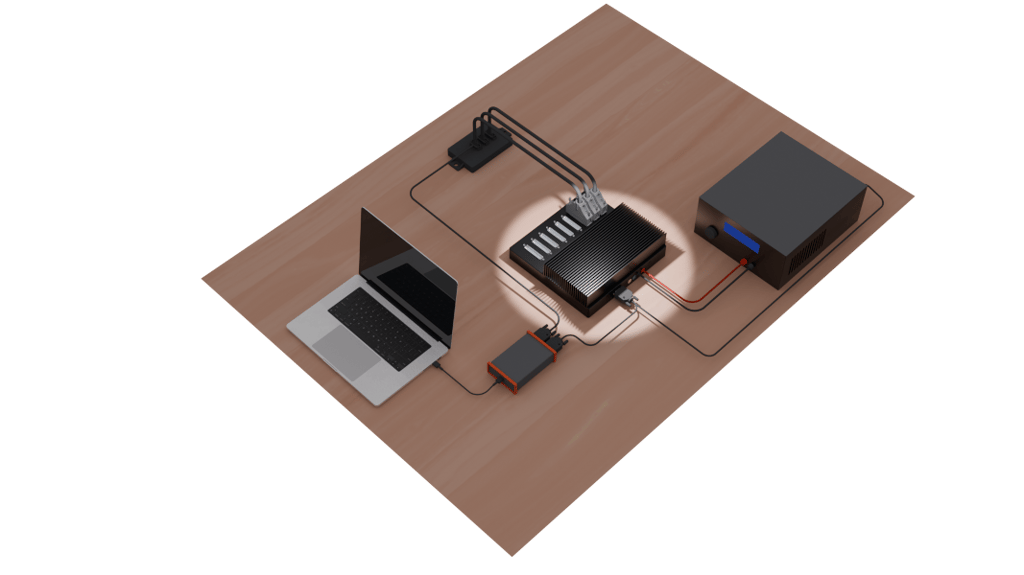 The Prime version FlexBench provides dedicated electronic loads (E-Load) on each output channel, enabling precise load current control. It is ideal for hardware and software development, validation testing, and production line end-of-line (EOL) testing, offering enhanced flexibility and testing capability.
