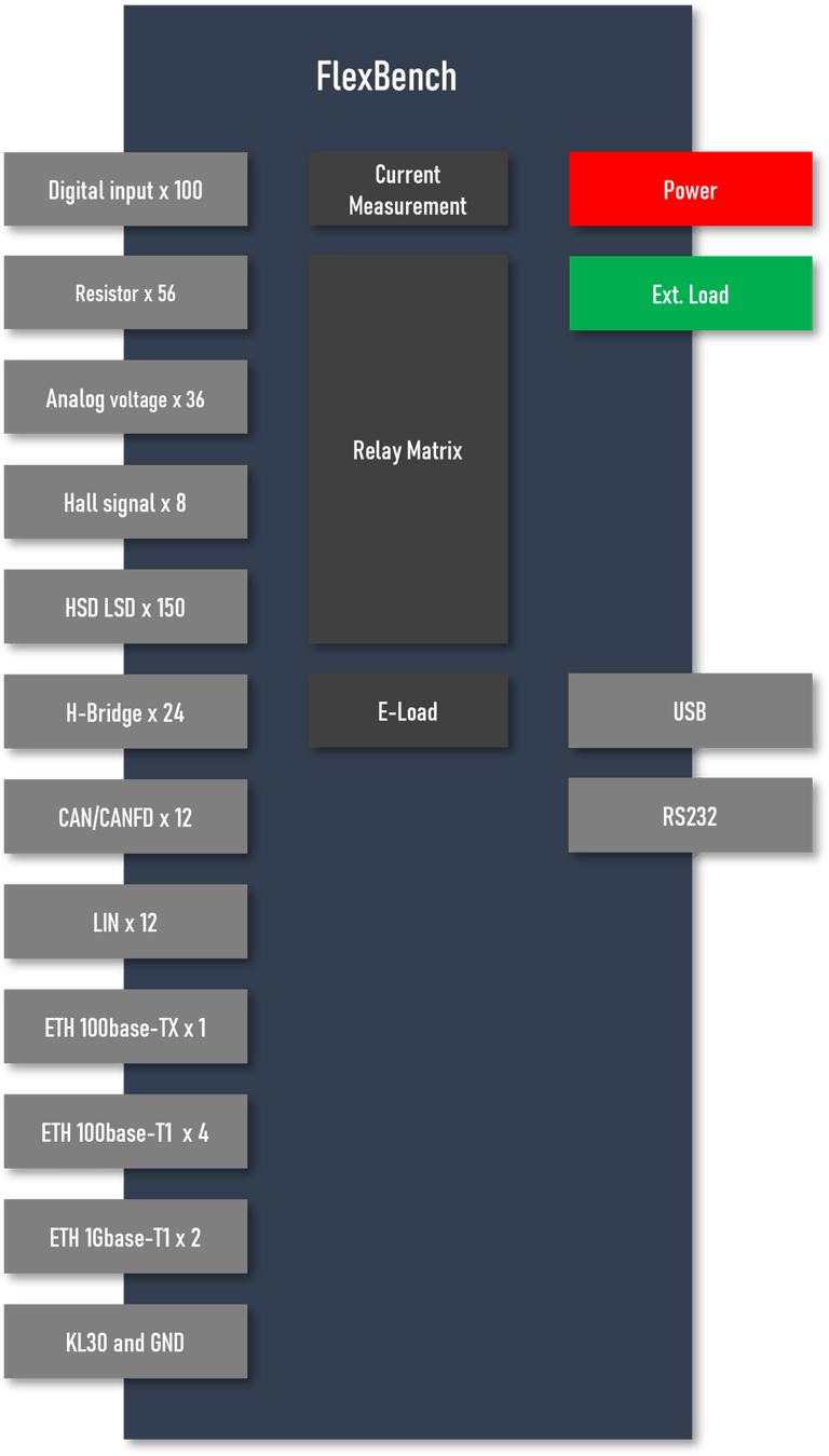The Advanced version FlexBench integrates in-vehicle communication modules, allowing it to operate independently without third-party communication tools. It is best suited for HIL testing applications, delivering a complete and standalone solution for advanced system-level validation.